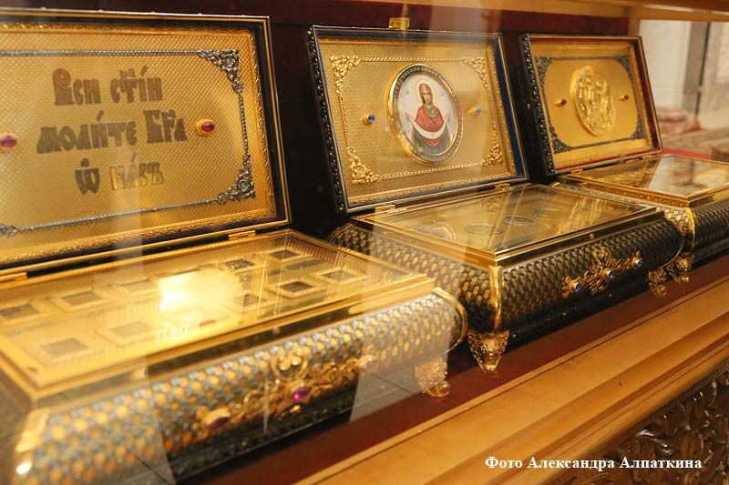 Самые трепетные, благоговейные чувства, понятные и близкие каждому верующему, вызывают ковчеги с частицами Покрова, Ризы и Пояса Пресвятой Богородицы; реликварий с шипом Тернового венца Христа Спасителя. Это настоящее чудо для Кургана, когда каждый может прийти в Богоявленский храм и приложиться к святыням. Здесь же ковчеги с частицами мощей святителя-чудотворца Николая; великомученика и целителя Пантелеимона; святителя Спиридона. Чудесное пребывание таких святынь в Богоявленском соборе делает его богоспасаемым местом не только для Зауралья, но и всего православного мира.