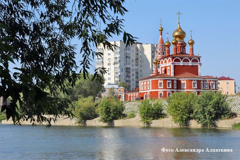 Богоявленский храм расположен в одном из красивейших мест Кургана — на излучине реки Тобол.