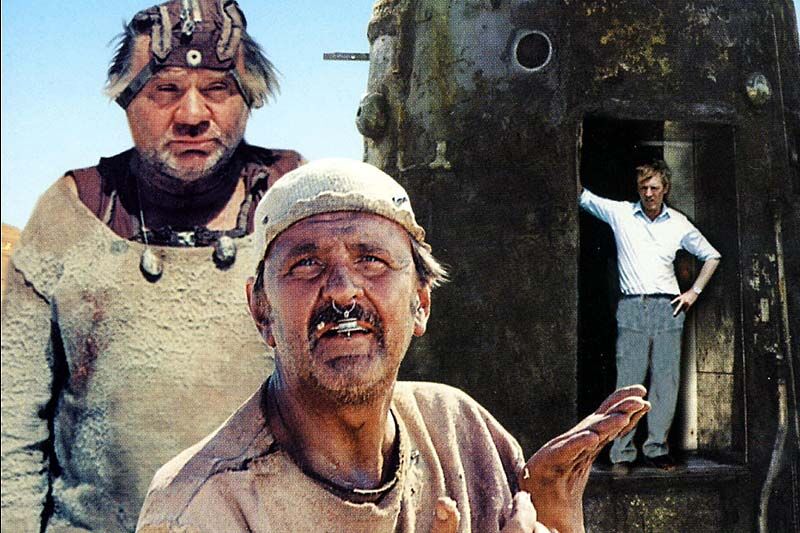 Особняком в советском кинематографе стоит фильм Данелии «Кин-дза-дза!» 1986 года, снятый в жанре антиутопии. Он не только смешной, но и имеет огромный политический подтекст. Действие происходит на планете Плюк в галактике Кин-дза-дза. Там нет растений и животных, техника заржавела, вода превращена в топливо, а жители едят пластик. Население делится на две категории – привелигированные «чатлане» и бесправные «пацаки». Последние обязаны носить в носу колокольчик, а встречая чатланина приседать перед ним и говорить «Ку!». На планете Плюк оказывается советских гражданин, который вышел купить макароны, а попал в другую галактику. Фильм несколько трагичный, хотя в нем много комических ситуаций, и его просмотр доставит настоящее удовольствие. К тому же многие слова из языка планеты Плюк попали в разговорную русскую речь и стали устойчивыми выражениями. Посмотрев картину вы, как минимум, будете знать, в чем преимущество малиновых штанов и какую ценность имеют спички.
