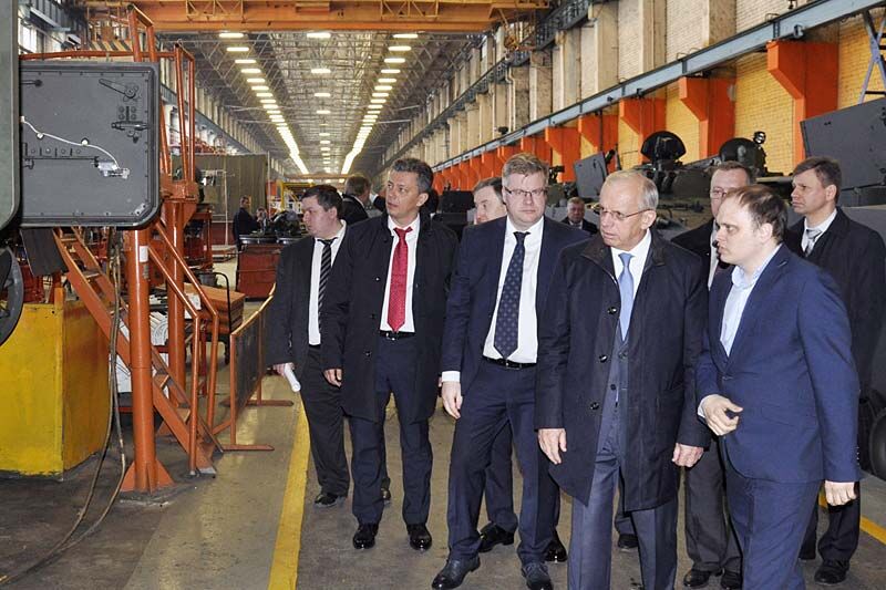 Затем на Курганмашзаводе исполнительный директор предприятия Пётр Тюков провёл для делегации экскурсию по основным подразделениям: механосборочному заводу, заводам сварных конструкций и гражданской продукции, сборочно-сдаточному производству. Он отметил, что сегодня предприятие продолжает выполнять государственный оборонный заказ на поставку военной техники, реализует экспортные контракты, увеличивает объёмы производства гражданской продукции. Кроме того, топ‑менеджмент холдинга осмотрел социальные объекты: Дворец культуры машиностроителей, гостиницу «Славянка», спорткомплекс «Зауралец», детский оздоровительный лагерь имени Коли Мяготина.