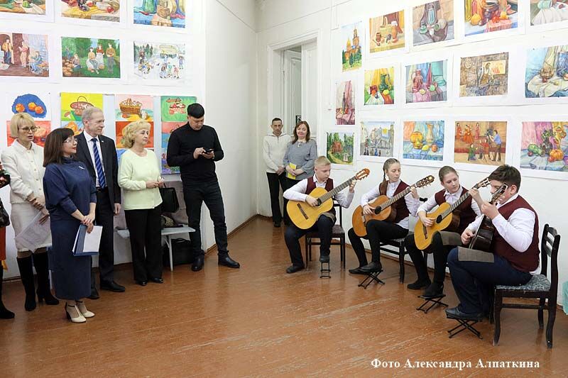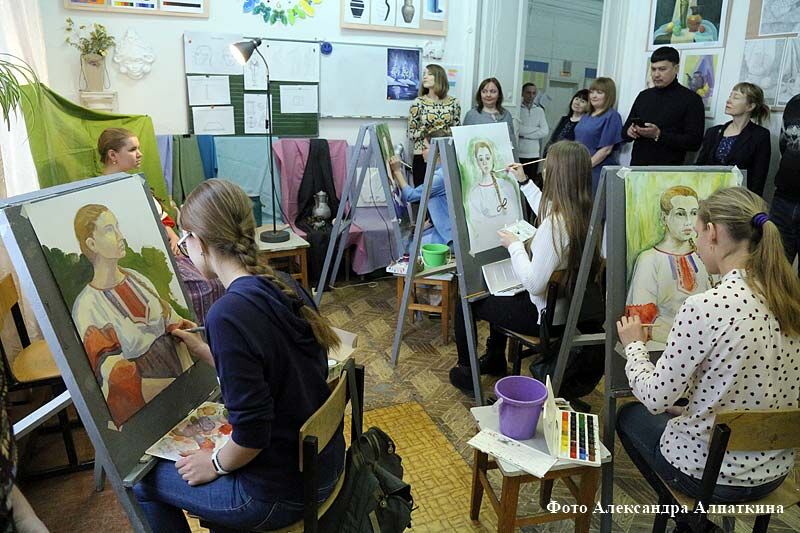 Но прежде всего гостей познакомили с историей здания и его нынешними одаренными обитателями, юными художниками, обучающимися в отделе изобразительного искусства.