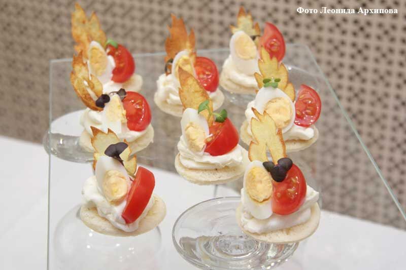 То, что появляются новые рецепты и блюда, можно было убедиться на этапе домашнего задания профессионалов. Конкурс начинался с большой выставки банкетных блюд и фуршетных закусок, с любовью приготовленных и искусно представленных и красочно оформленных. Над иными презентациями не один день трудились декораторы, так что возникало ощущение, что попал в музей русской культуры или даже планетарий.