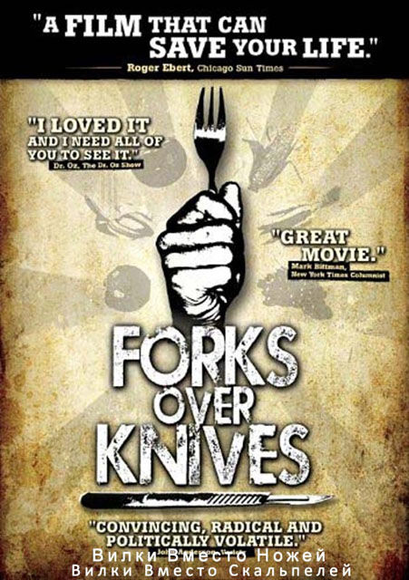 В этом документальном фильме в доступной форме раскрываются результаты самых крупных и революционных научных и клинических исследований взаимосвязи питания и хронических заболеваний. «Вилки вместо ножей» — один из наиболее разумных и популярных фильмов об адекватном питании. Вам расскажут о реальных причинах возникновения главных убийц человечества в наше время — сердечно-сосудистых заболеваний и рака — такие легенды в области мировой науки и питания как Т. Колин Кэмпбелл, Джон МакДугалл, Колдуэлл Эсселстин, Нил Барнард.