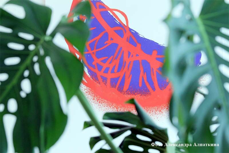 Тут есть работы, более насыщенные объектами и внутренней жизнью – ракета «Восток», мистическое существо – персонаж знаменитого мультфильма японского режиссера Хаяо Миядзаки «Унесенные призраками», в других рисунках ярким, сочным пятном обозначен единственный предмет – апельсин, яблоко или зонтик с льющимся на него дождевым конфетти… Разгадками художественных кодов сразу же занялись поклонники современного искусства, увидев в них знакомые образы с рисунков Пикассо и даже Жана-Мишеля Баския.