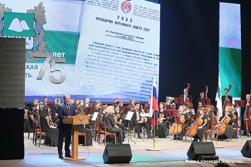 Полномочный представитель Президента РФ в Уральском федеральном округе Игорь Холманских огласил приветственное письмо Президента России Владимира Путина. Поздравляя зауральцев со славным юбилеем, Президент подчеркнул, что сегодня перед областью стоят важные задачи, «главные из которых связаны с формированием благоприятных условий для ведения предпринимательской деятельности, улучшения делового, инвестиционного климата, создания наукоемких, высокотехнологичных производств». От своего имени Игорь Холманских также поздравил жителей области с 75-летним юбилеем.