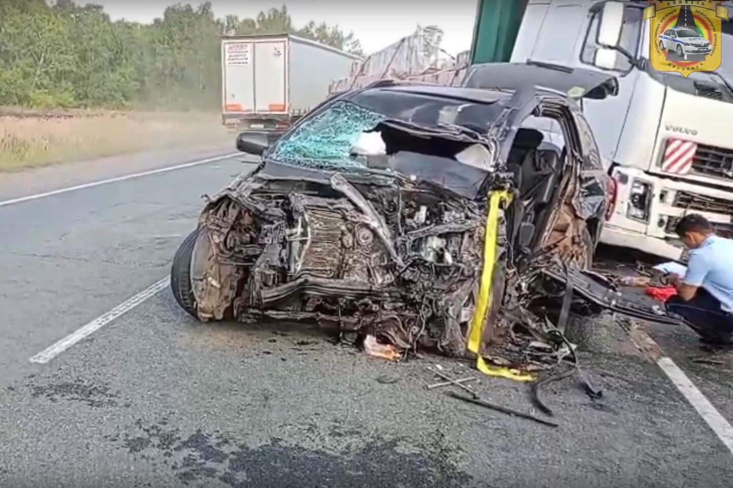 В результате столкновения водитель и пассажир легковой иномарки скончались на месте происшествия до приезда скорой помощи.
