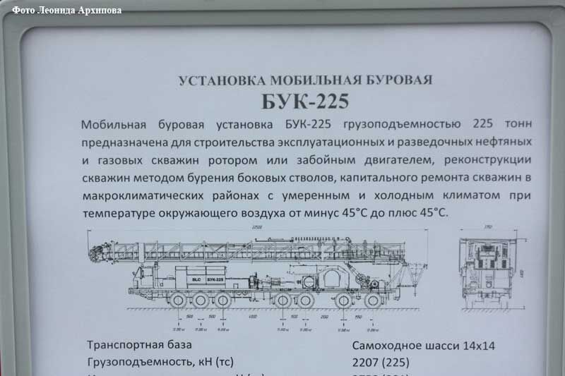 Генеральный директор ООО «Завод «Буровые установки Кургана» Виктор Бутко рассказал об особенностях конструкции машины и об её уникальных преимуществах. Главное, что БУК-225 предназначен не только для освоения и ремонта скважин, но и позволяет проводить эксплуатационную геологоразведку и бурение нефтегазовых месторождений, для чего мобильная буровая оснащена не только подъёмным агрегатом, но и силовым приводом. По предложению завода БУК, производитель шасси — Минский автомобильный завод — значительно его модернизировал. В частности, установлены два дублирующихся силовых агрегата, чтобы при выходе одного из строя, установка продолжила функционировать в штатном режиме. Шасси сконструировано так, чтобы обеспечить оптимальную развесовку по осям многочисленных агрегатов, установленных на нём — силовой установки, резервного электродвигателя, скважинного насоса и многого другого. Всё это хозяйство легко и удобно контролировать. Например, лебёдка управляется из кабины бурильщика при помощи джойстика, а само место оператора, в чём мы убедились, поднявшись на рабочую площадку, также оборудовано по последнему слову эргономики, там есть и обогреватель, и кондиционер.