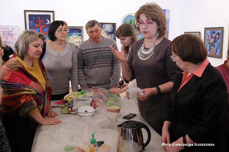 Войлок прекрасно вписывается и в интерьер квартиры, и в тонкое искусство женщины украшать себя. На выставке Вера Ивановна провела мастер-класс по созданию цветочной броши из войлока, которым заинтересовались не только девушки, но и представители сильного пола.