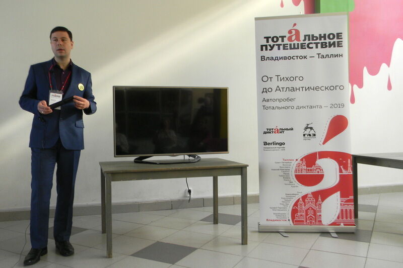 Вторая часть путешествия – научно-популярные лекции. В Кургане с такой выступил Владимир Пахомов — кандидат филологических наук, главный редактор портала «Грамота.ру», научный сотрудник Института русского языка имени В. В. Виноградова РАН, соведущий радиопередач «Говорим правильно» («Радио 7 на семи холмах») и «Игра слов» («Радио России – Культура»), член Орфографической комиссии РАН.