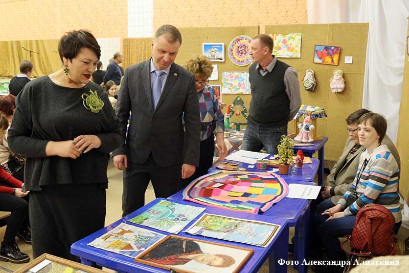 Сотни экспонатов народного творчества разместились и коридоре, и в зале дома творчества: платки, игрушки, сувениры, вышивка, изделия из бумаги, коврики и панно и многое другое. Нужно отметить, что все изделия имели какой-то радостный цвет, каждое излучало душевное тепло, с которым его создавали участники конкурсов.