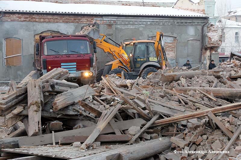 В ходе работ не обошлось без эксцессов. Так, при сносе дома по ул. Куйбышева, 42 были демонтированы ворота, входящие в состав объекта культурного наследия регионального значения «Здание аптеки К. С. Землянского» (Куйбышева, 40). Начальник отдела охраны и учета объектов культурного наследия Дмитрий Бровко назвал случившееся разгильдяйством и заверил, что после проверки будут приняты меры для привлечения виновных к ответственности. По его мнению, восстановить ворота в историческом виде возможно: «Все материалы для создания объекта в первоначальном виде существуют», — цитируют чиновника общественники, считающие, что программа расселения аварийного жилья является благом для региона, но колоссальной бедой для памятников архитектуры.