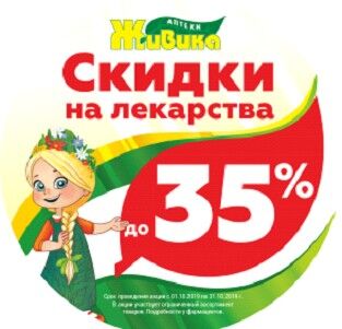 Помимо скидок в честь открытия аптеки – только в октябре — скидки на лекарства в аптеках Живика до 35%. Экономия до 700 рублей! Перечень товаров по акции смотрите на сайте.